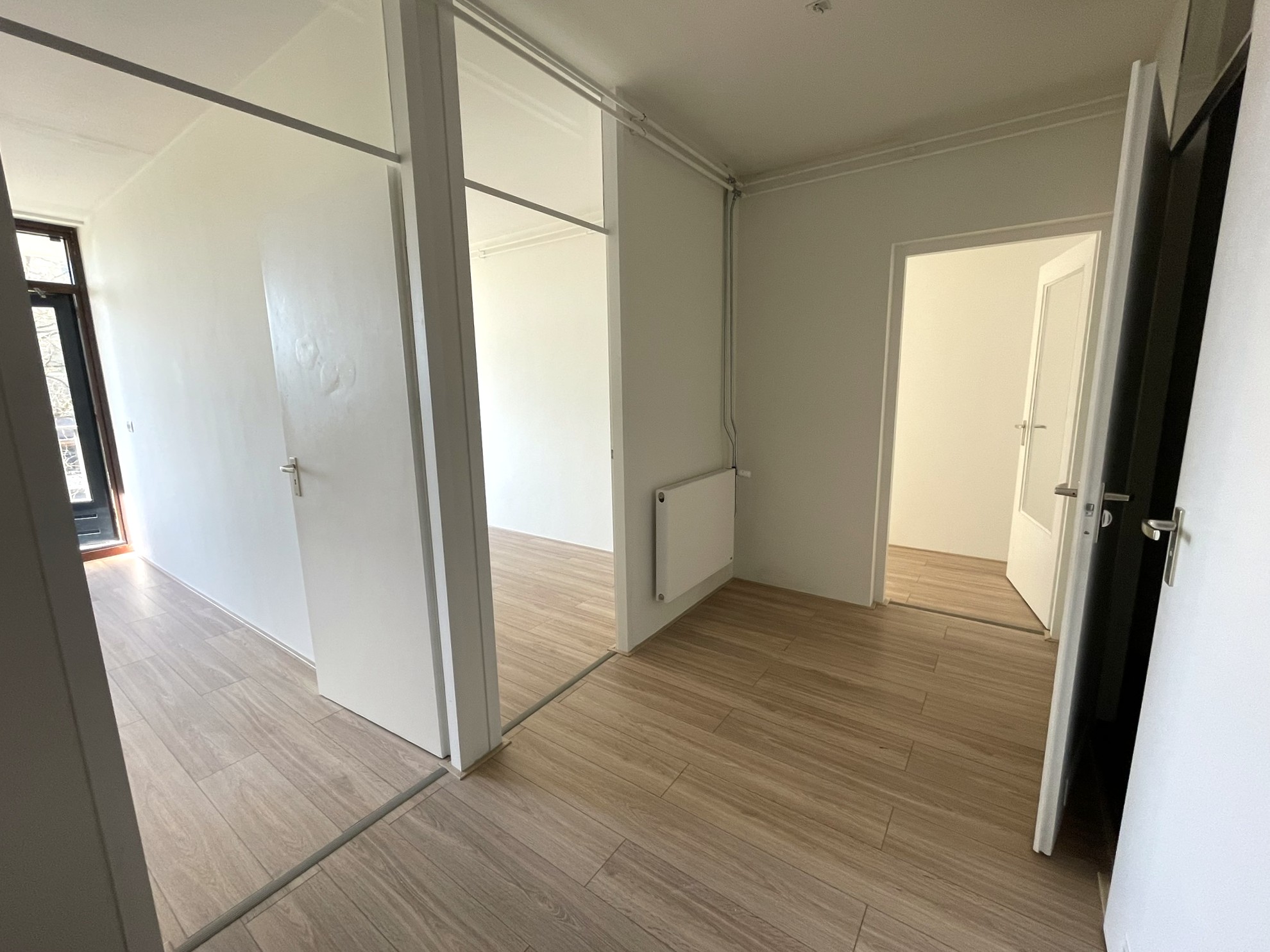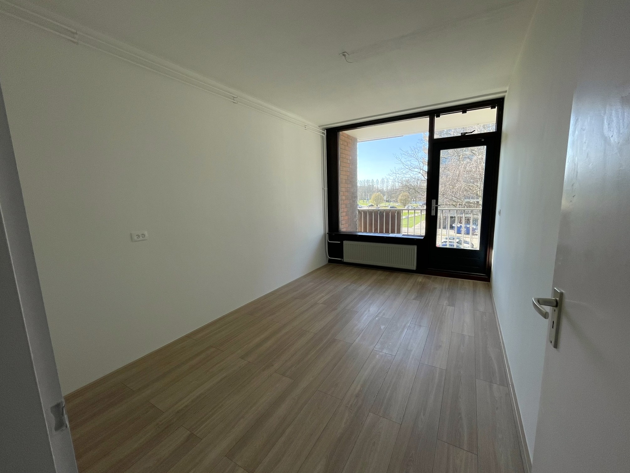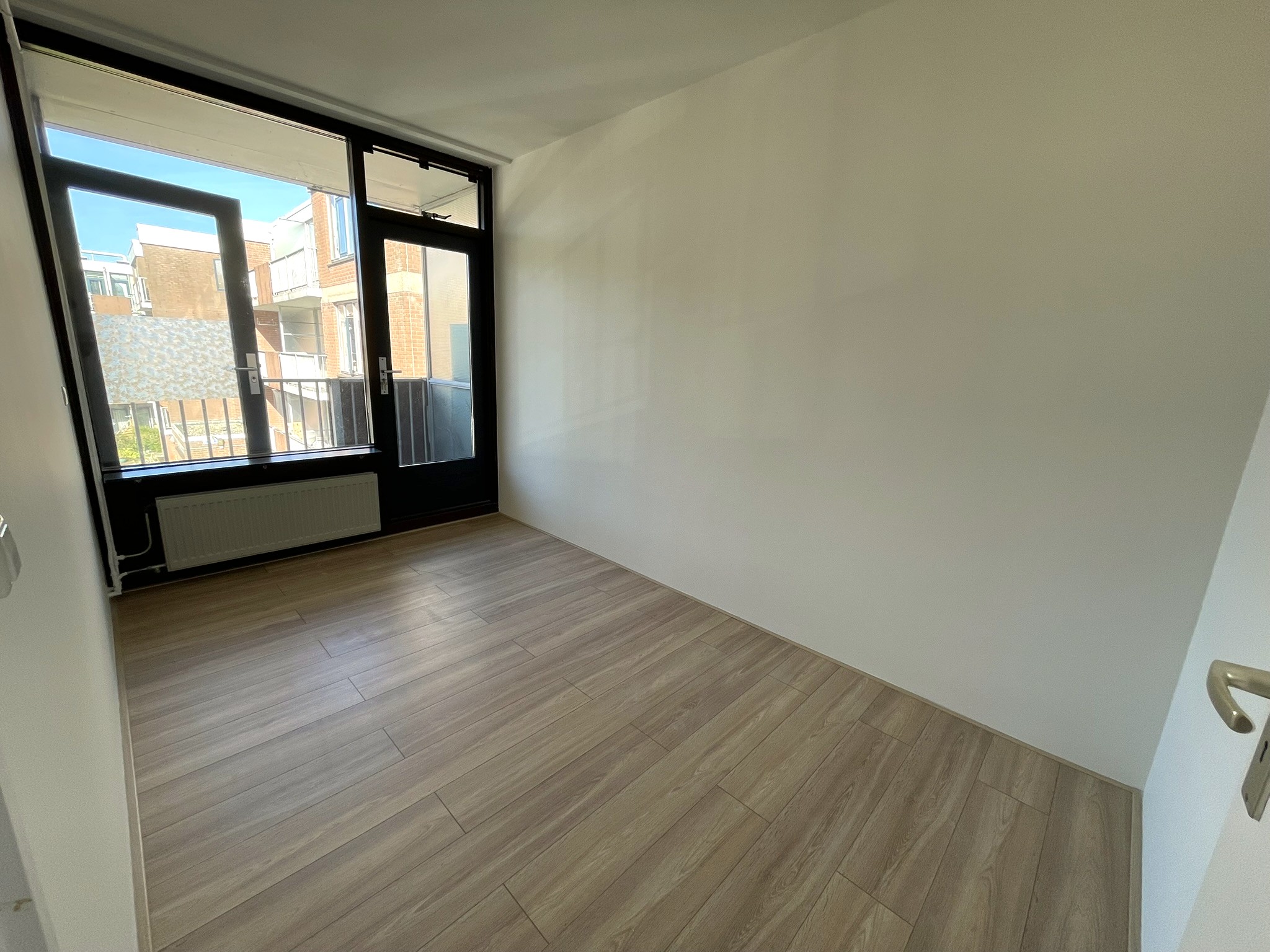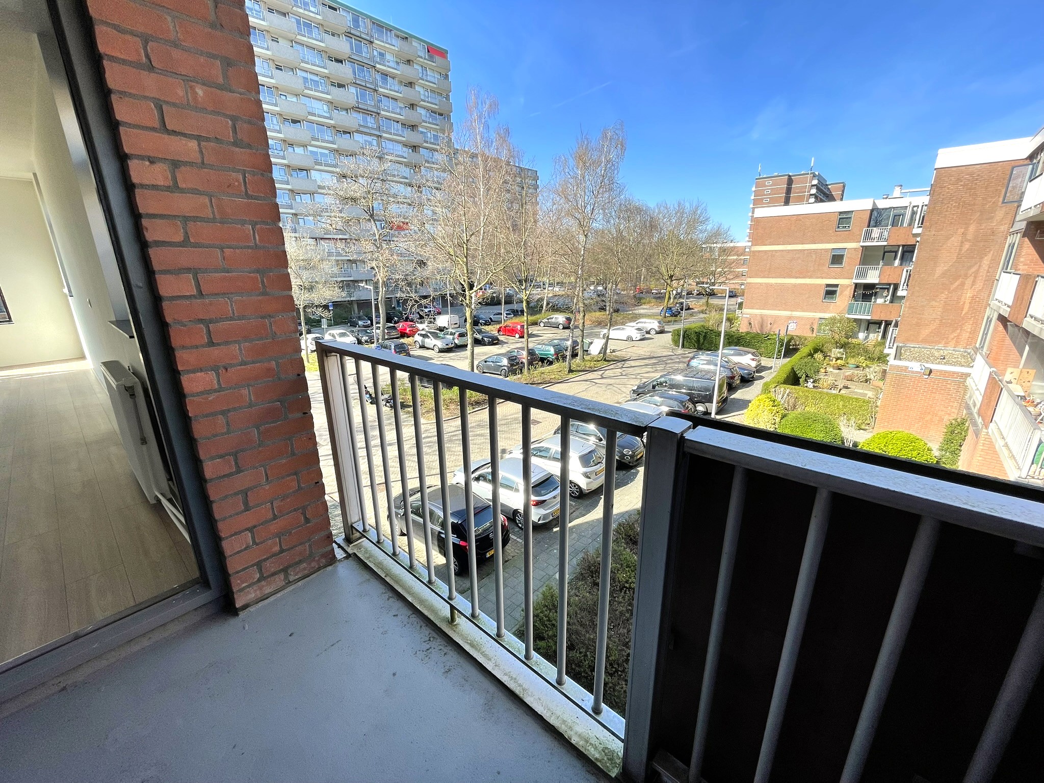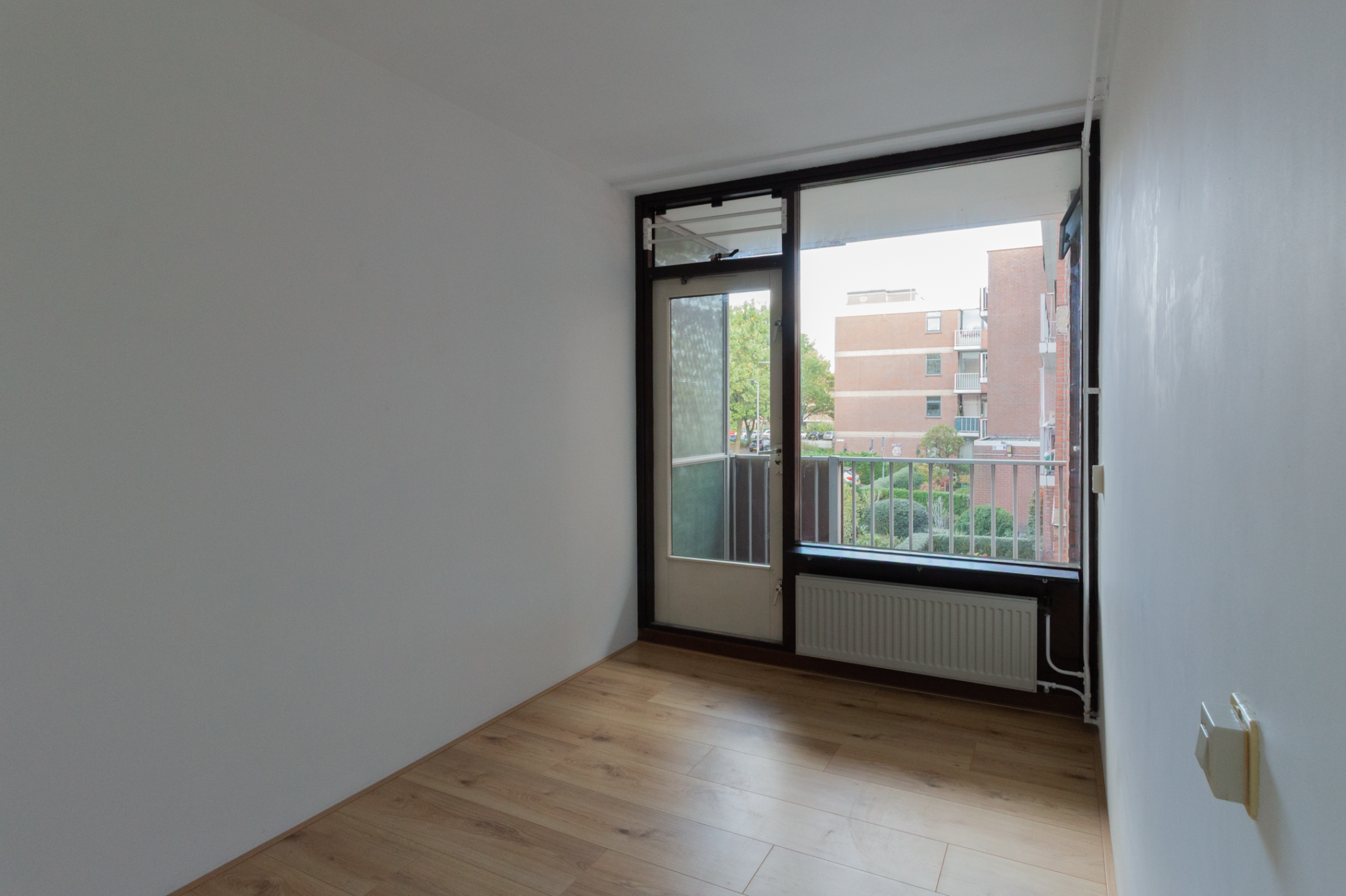 De woning heeft een lichte en ruime woonkamer met toegang tot het balkon. De moderne keuken is recent gerenoveerd en voorzien van alle benodigde inbouwapparatuur. De woning beschikt over drie slaapkamers, een net afgewerkte badkamer, en een tweede balkon aan de achterzijde.